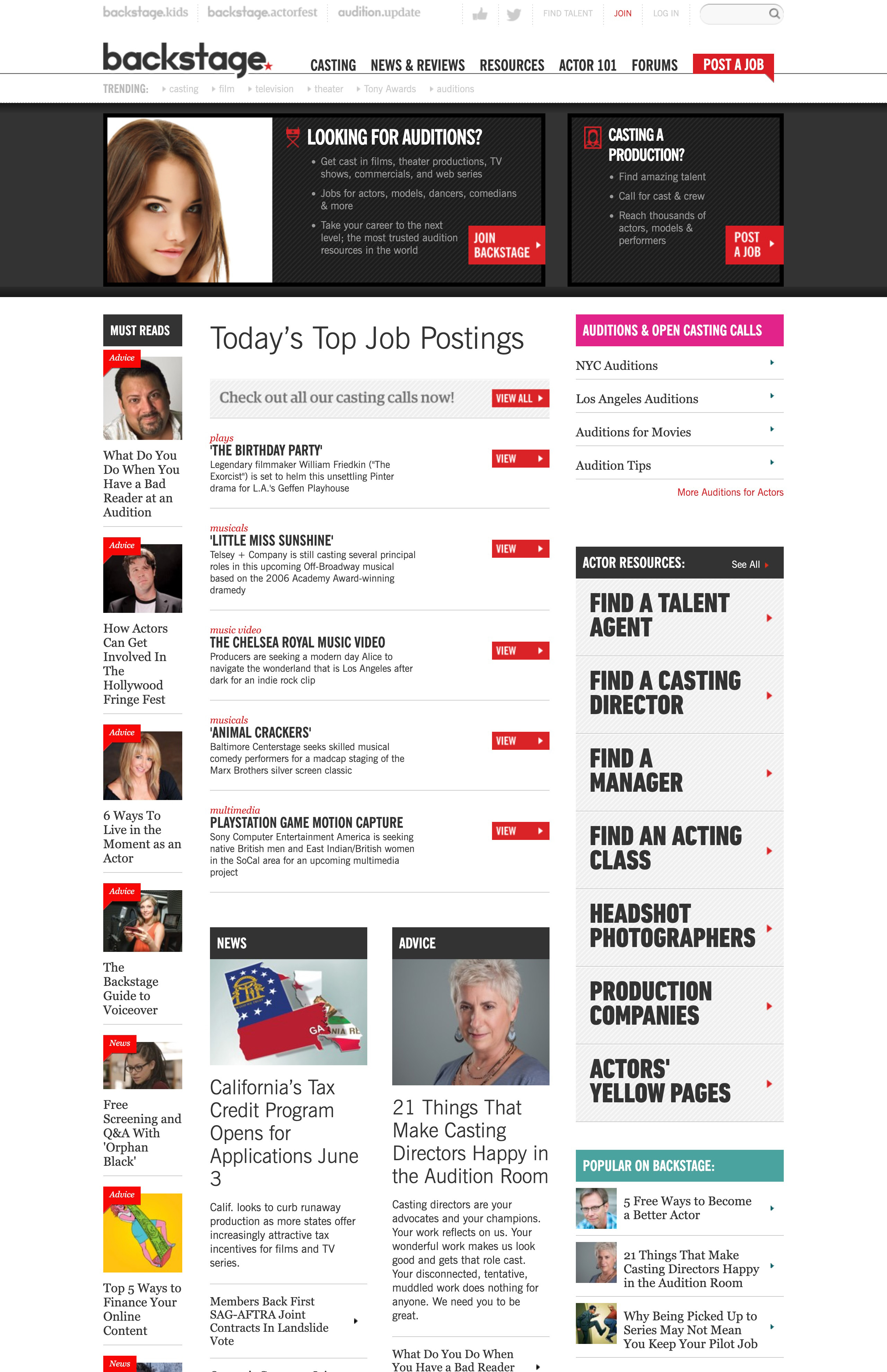 ↑ In 2013 Backstage was mostly just an online magazine and job board (I didn't design this).